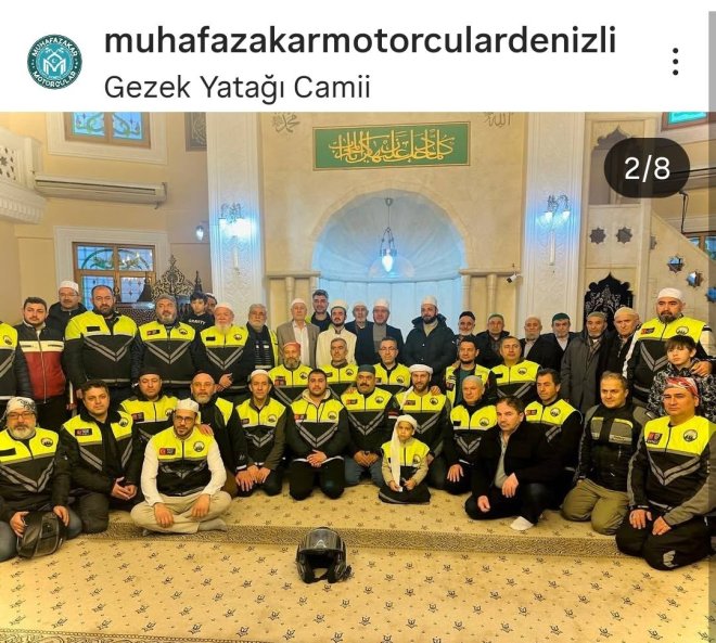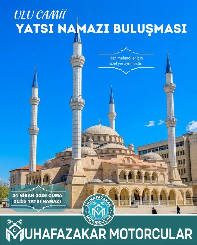 Bugün de Ulu Camide Yatsı namazı buluşması vardı. Muhafazakar Motorcular Haftanın değişik günlerinde ,değişik namaz vakitlerin ,değişik camilerde buluşmalar gerçekleştiriyor. Büyük ilgi ve katılımın olduğu buluşmalarda Milli ve manevi değerlerimiz ön plana çıkarılmaya çalışılıyor. Muhafazakar Motorcuların yaptığı etkinliklerden bazıları: